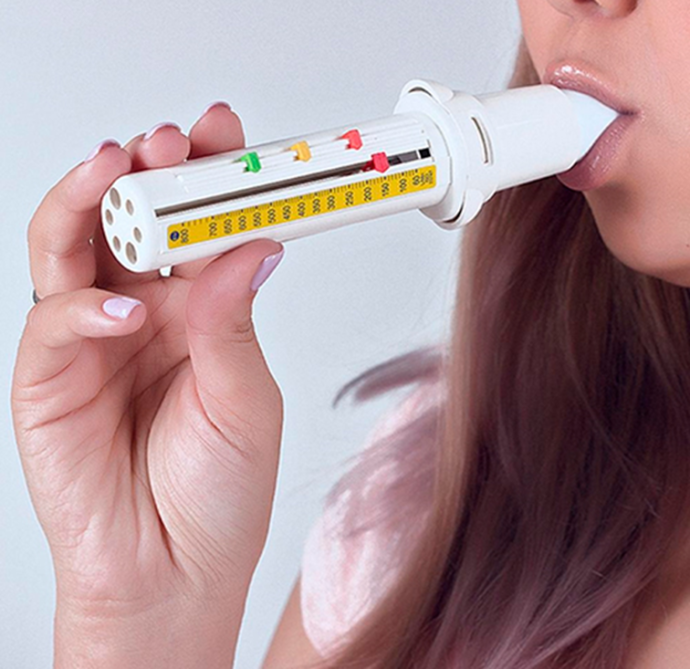 Во время выдоха прибор должен находиться в горизонтальном положении, а мундштук располагаться между зубами в плотно закрытом рту. О правильном выполнении упражнения свидетельствует вибрация в груди, а её отсутствие означает, что мундштук удерживается недостаточно крепко.