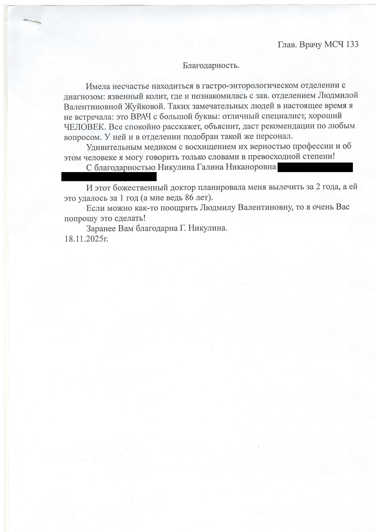 Благодарность от Никулиной Галины Никаноровны, Жуковой Людмиле Валентиновне и гастро-этнорологическ 19.11.2025 23:05